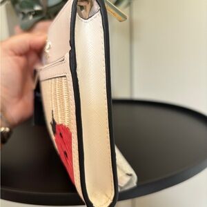Kate Spade Dottie Embroidered Straw Clutch/ Wristlet. New with tags. Has two zippered compartments and credit card slots on the main compartment with a detachable wristlet strap.