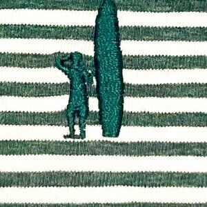 The johnnie-O Hangin’ Out Striped Pocket Short Sleeve Polo Shirt in Green White is a stylish and versatile choice for men. Size is Large. Made from a blended fabric of spandex and cotton, this polo features a collared neckline, button closure, and short sleeves. It is ideal for various occasions such as golf, travel, activewear, party, or casual outings. The shirt is adorned with an embroidered johnnie-O logo on the back at the shoulder line.