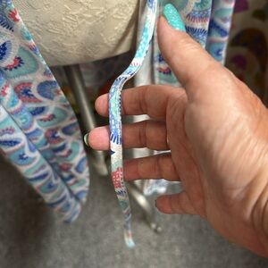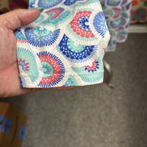 Very soft. Lightweight. Belt loops, no belt. Inside ties for closure. Excellent condition.