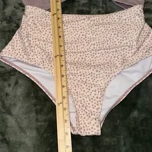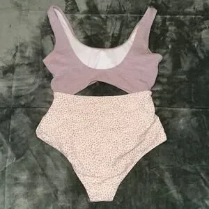 One-Piece Swimsuit Women's Medium Pink Purple Polka Dot Cut Outs Knit Swimwear.
