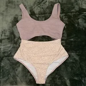 One-Piece Swimsuit Women's Medium Mauve Purple Polka Dot Cut Outs Swimwear