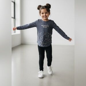 Blue tee with gold star design and 'Follow Your Dreams' text.