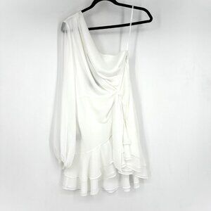 NWT Michael Costello Revolve Sunny One Sleeve Front Slit Mini Dress White Medium