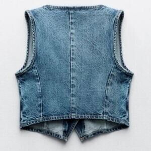 Zara Cripped denim jean vest Sz XS 100 % Cotton excellent condition