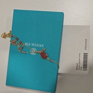 This elegant layered necklace features a stunning combination of gold and pink tones, perfect for adding a touch of sophistication to any outfit.