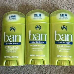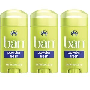 Ban Invisible Solid Antiperspirant Deodorant for Women and Men, 24-Hour Underarm Odor & Sweat Protection, Powder Fresh, 2.6 Oz, Pack of 3