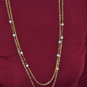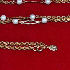 Long Necklace, Faux Pearls and Gold Tone, Vintage Park Lane, 60"