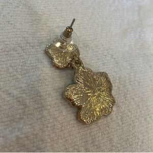 Vintage Double Flower Blue Enamel With Crystal Rhinestone Drop Earrings
