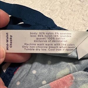 Cacique Blue Cherry Print Lace Panties with garters