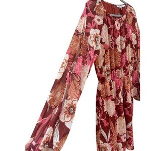 Collective Concepts Women’s M Chiffon Floral Red & Orange Multicolor Dress NWT