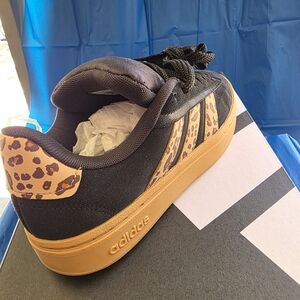 Adidas Grand Court Alpha OOs Black and Brown Sneakers with Leopard Print
