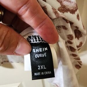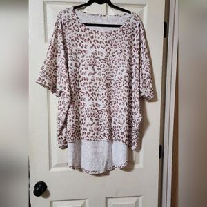 Trendy high-low, leopard print top with short sleeves. Features a pink and white color scheme. Ideal for casual wear. Soft material. Size 2XL.