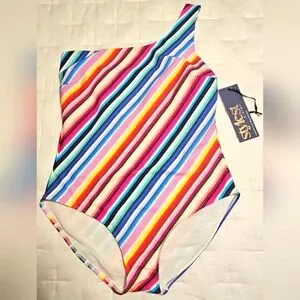 NWT Stylest DreamSculpt One Shoulder Suit: Rainbow Gradient: Large: UPF 50+