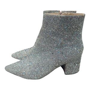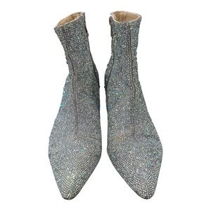 Shimmering silver booties with sparkling details. Chic and stylish for any event.