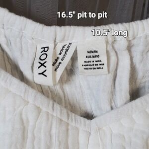 Roxy Gauze Babydoll Crop Top Size M White Puff Sleeve Smocked Summer Beach NWT