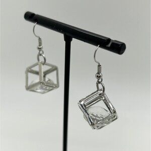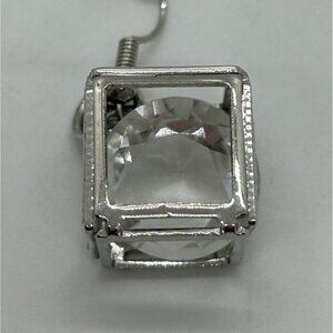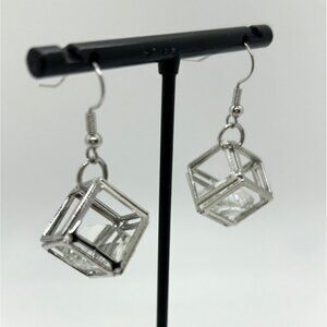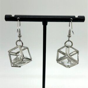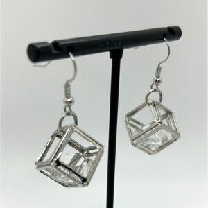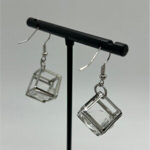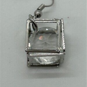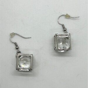 Silver-Tone Box Earrings Clear Rivoli Dangles Pierced Hooks Geometric