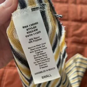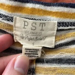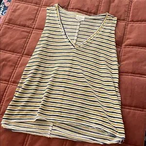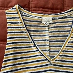 Project Social T Striped Tank Top Yellow Gray Blue V-Neck Sleeveless Size S