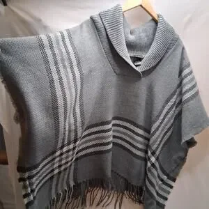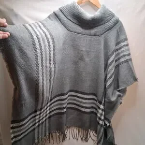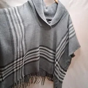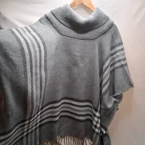 Fraas Cowl Neck Fringe Plaid Sweater Pullover Poncho Gray Plaid Women - One Size in mint condition.
