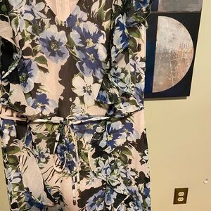 Hidden zipper in back and tie belt at waist. armpit -armpit= 17" Shoulder -hem= 35"