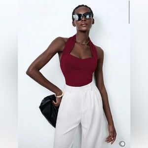 New NWT SHEIN red tank bodysuits medium Lumivelle halter Maija twist open back