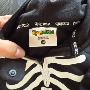 Charming black onesie with a white skeleton design. Ideal for Halloween fun. Warm as it is lightly fleece lined.