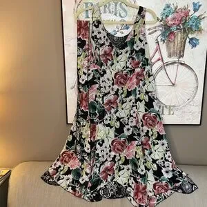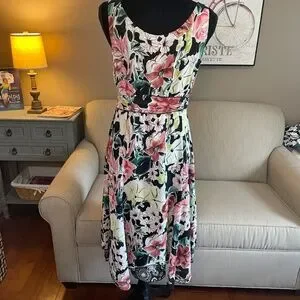 CAbi -Sz Lg Summer Breezy Rayon Floral Reversible Fit & Flare Dress So unique, flirty and fabulous! Perfect for traveling as it is 2 dresses in one and does not wrinkle easily! Enjoy in summer, spring or top with a stylish jacket to bring into fall and winter! Will also be suitable for many occasions, wedding, shower, date night or office! No known flaws, examine pics carefully! Check out the rest of my items for a bundle discount and save on shipping!