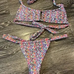 Strawberry Milk Mob floral bikini set. Top and bottom size M. Only worn a couple of times.