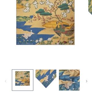 Square fabric with hand stitched edges, hand made in Italy of 💯% silk. Gorgeous Asian inspired nature and bird hand painted print.