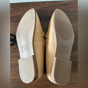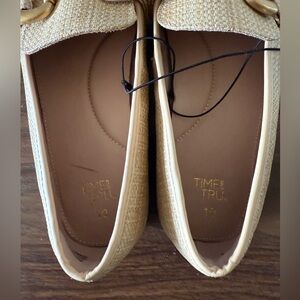 Time and Tru elegant trendy gold-tone chunky buckle slip on loafer in faux raffia. Comfortable with memory foam footbed. Size 10.