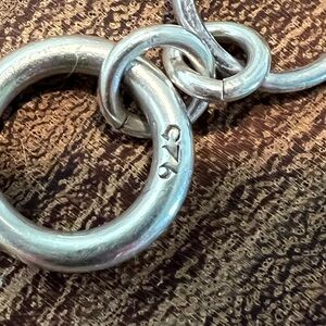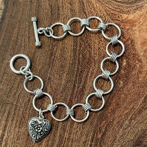 Sterling silver .925 bracelet featuring a puffy sterling heart charm. Lots of room to add additional charms if wanted. Bracelet measures 7 1/4 inches from end to end.
