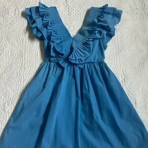 Charming blue mini dress with playful ruffles. Perfect for any occasion. Worn once, looks and feels brand new.