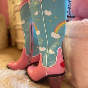 Dolls Kills Care Bear (Vintage) Leather Cowboy Boots Maximalism Heels size 8.5