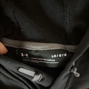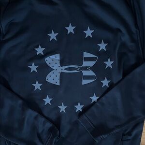 Dark hoodie with Under Armour logo surrounded by stars. Sleek and modern design.