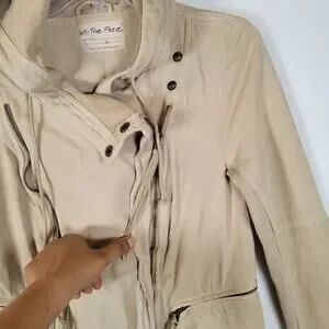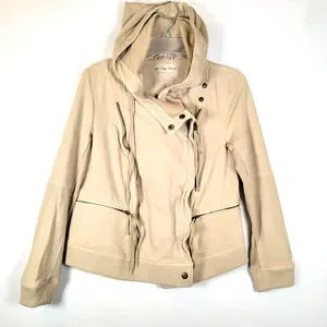 Free People We the Free Womens Carmen Moto Zip Hoodie Pocket Jacket Coat Size XS Tan Boho Fall