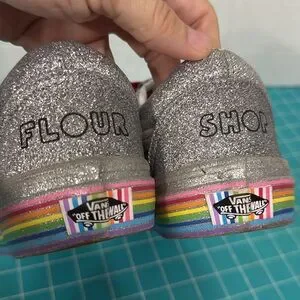 Vans x Flour Shop by Amirah Kassem Rainbow Glitter Old Skool Skate Shoe. These are in great pre owned condition, cheek out the photos. Small black mark on right heel sole.