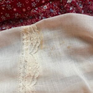 Tag size 3 Gunne Sax Vintage 1970s Prarie Dress. Though this is a vintage piece, and has delicate details, it’s in pretty good condition. Pictured is a small faint stain on one of the sleeves, other than that no noticeable wear or damage.