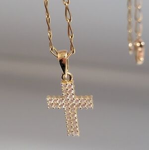 14k Solid Gold Cross Pendant, Approx. 1" Height, cz's with striking sparkle.