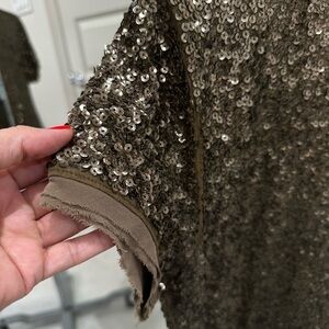 J. Crew sequin t shirt, size large, the color is an army green almost brown. Sparkle with this sequin-adorned top. Ideal for evenings out. Good used condition.