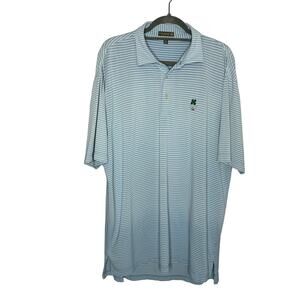 Peter Millar Men's Cottage Blue Donald Stripe Stretch Mesh Polo Shirt Golf Sz XL