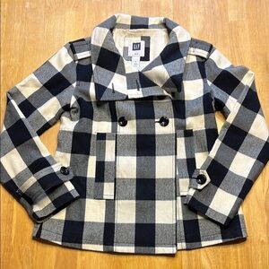 GAP Black and White Pea Coat Classic Checkered Design - Size Medium
