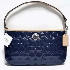 Stylish Coach wristlet bag in dark blue. Embossed signature design adds elegance. New with Tag!