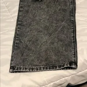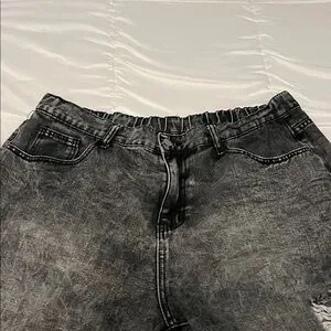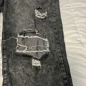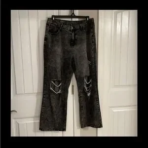 Stylish distressed black jeans wide leg . Perfect for a casual, edgy look. Waist is elastic in the back. Ask for measurements