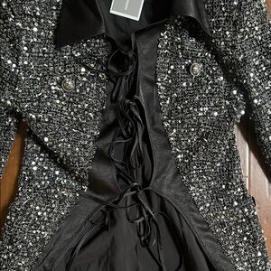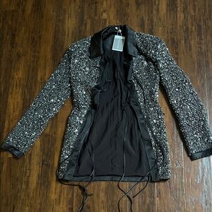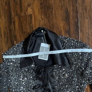 New with tags. Picture with measurements from the brand site as well as my attempt at measurements. This elegant women's jacket features a stunning black and silver design, perfect for adding a touch of sophistication to any outfit. Ideal for both casual and formal occasions.