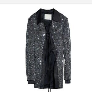 NWT Marigold Shadows Stunner Sequin Jacket Silver & Black Size Large