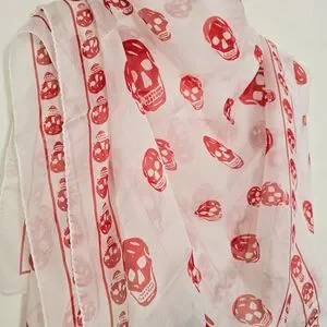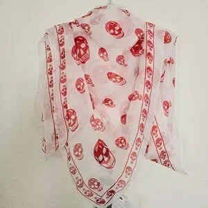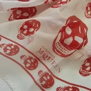 Alexander McQueen Skull Silk Scarf White Red