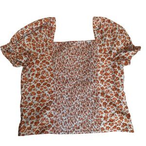 Madewell Shirt Size 6 Medium Button Front Smocked Back Top Floral Blue Orange