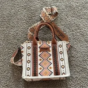 Stylish Wrangler tote with a bold geometric pattern. Features durable handles and a spacious interior. Perfect for everyday use.
