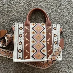Wrangler Women's Tote with Geometric Design - Brown and Cream