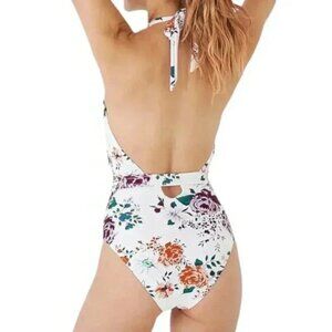 NWT CUPSHE Womens Floral Rose Garden Cross Ruched Wrap One Piece Swimsuit Small