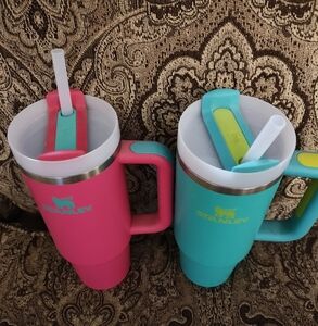 Two 30 ounce Stanley tumblers in Passion Pink and Tropical Teal from the 2025 Heat Wave Collection. EUC, dishwasher safe, gorgeous colors. Listing is for both cups together.